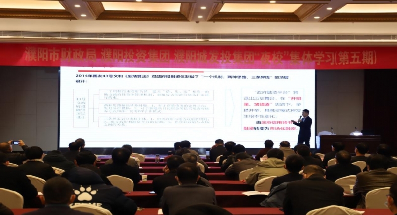 12月2日晚,濮陽市財(cái)政局聯(lián)合濮陽投資集團(tuán)、濮陽城發(fā)投集團(tuán)開展“夜校”集體學(xué)習(xí)(第五期)活動,本期集體學(xué)習(xí)特邀資深城投公司轉(zhuǎn)型專家、江蘇現(xiàn)代資產(chǎn)投資咨詢集團(tuán)高級顧問、現(xiàn)代研究院副院長、《城投藍(lán)皮書》副主編李啟春先生擔(dān)任講師。濮陽市財(cái)政局黨組書記、局長,濮陽投資集團(tuán)黨委書記、董事長潘順恩主持活動并講話。