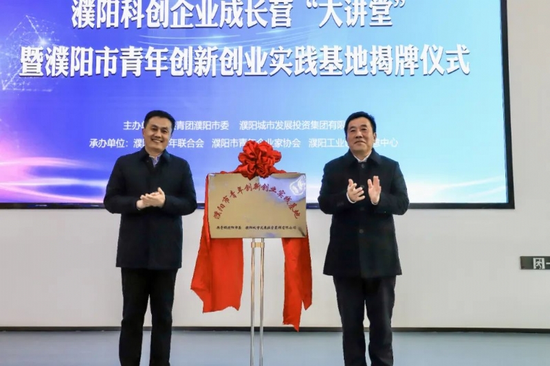 團市委副書記閆兆敏、濮陽城發(fā)投集團總經(jīng)理閆進軒為濮陽市青年創(chuàng)新創(chuàng)業(yè)實踐基地揭牌。