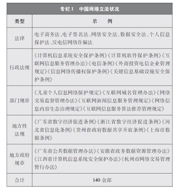 中國(guó)網(wǎng)絡(luò)立法隨著互聯(lián)網(wǎng)發(fā)展經(jīng)歷了從無(wú)到有、從少到多、由點(diǎn)到面、由面到體的發(fā)展過(guò)程。第 一階段從1994年至1999年,是接入互聯(lián)網(wǎng)階段。上網(wǎng)用戶(hù)和設(shè)備數(shù)量穩(wěn)步增加。這一階段網(wǎng)絡(luò)立法主要聚焦于網(wǎng)絡(luò)基礎(chǔ)設(shè)施安全,即計(jì)算機(jī)系統(tǒng)安全和聯(lián)網(wǎng)安全。第二階段從2000年至2011年,是PC互聯(lián)網(wǎng)階段。隨著計(jì)算機(jī)數(shù)量逐步增加、上網(wǎng)資費(fèi)逐步降低,用戶(hù)上網(wǎng)日益普遍,網(wǎng)絡(luò)信息服務(wù)迅猛發(fā)展。這一階段網(wǎng)絡(luò)立法轉(zhuǎn)向側(cè)重網(wǎng)絡(luò)服務(wù)管理和內(nèi)容管理。第三階段從2012年至今,是移動(dòng)互聯(lián)網(wǎng)階段。這一階段網(wǎng)絡(luò)立法逐步趨向全面涵蓋網(wǎng)絡(luò)信息服務(wù)、信息化發(fā)展、網(wǎng)絡(luò)安全保護(hù)等在內(nèi)的網(wǎng)絡(luò)綜合治理。在這一進(jìn)程中,中國(guó)制定出臺(tái)網(wǎng)絡(luò)領(lǐng)域立法140余部,基本形成了以憲法為根本,以法律、行政法規(guī)、部門(mén)規(guī)章和地方性法規(guī)、地方政府規(guī)章為依托,以傳統(tǒng)立法為基礎(chǔ),以網(wǎng)絡(luò)內(nèi)容建設(shè)與管理、網(wǎng)絡(luò)安全和信息化等網(wǎng)絡(luò)專(zhuān)門(mén)立法為主干的網(wǎng)絡(luò)法律體系,為網(wǎng)絡(luò)強(qiáng)國(guó)建設(shè)提供了堅(jiān)實(shí)的制度保障。