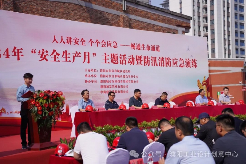 2024年6月15日上午,由濮陽(yáng)住房和城鄉(xiāng)建設(shè)局主辦,濮陽(yáng)住房和城鄉(xiāng)建設(shè)事務(wù)中心承辦,濮陽(yáng)城市發(fā)展投資集團(tuán)有限公司、濮陽(yáng)城發(fā)置業(yè)有限公司、中商建投建設(shè)有限公司協(xié)辦的2024年“安全生產(chǎn)月” 暨防汛消防應(yīng)急演練活動(dòng)儀式在濮陽(yáng)工業(yè)設(shè)計(jì)創(chuàng)意中心舉行,相關(guān)單位及施工人員200余人參加。
