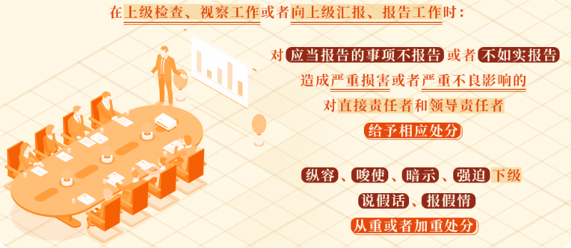 《關(guān)于新形勢(shì)下黨內(nèi)政治生活的若干準(zhǔn)則》規(guī)定,黨的各級(jí)組織和全體黨員必須如實(shí)向黨反映和報(bào)告情況,反對(duì)弄虛作假、虛報(bào)浮夸,反對(duì)隱瞞實(shí)情、報(bào)喜不報(bào)憂。領(lǐng)導(dǎo)機(jī)關(guān)和領(lǐng)導(dǎo)干部不準(zhǔn)以任何理由和名義縱容、唆使、暗示或強(qiáng)迫下級(jí)說假話。實(shí)踐中,有的黨組織和黨員干部為了謀取上級(jí)的肯定和贊許,上報(bào)假情況、假數(shù)字、假典型;有的為了掩飾發(fā)生的問題、粉飾太平,隱瞞真實(shí)情況;有的為了應(yīng)付檢查,無中生有、移花接木。這些行為誤導(dǎo)上級(jí)對(duì)實(shí)際情況的掌握,干擾上級(jí)作決策,給黨和人民事業(yè)造成損失,必須嚴(yán)肅追究相關(guān)人員責(zé)任。如果明知情況不實(shí)或有問題,不但不制止、不糾正、不如實(shí)報(bào)告,還要求下級(jí)說假話、報(bào)假情以掩蓋問題、隱瞞實(shí)情,則要給予更重處分。